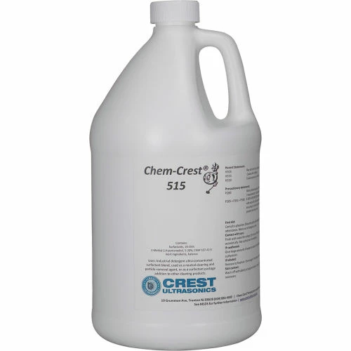 Chem-Crest 515 is used at 3-10% by volume in ultrasonic cleaning applications for light to heavy contaminants. Normal operating temperatures: 130ยฐ-160ยฐF. Recommended rinsing water temperature: 110 – 150ยฐF.
