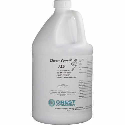 Chem-Crest 715 is available in cases of (4) x 1-gallon plastic bottles, 5-gallon pails, and in 55 gallon containers.