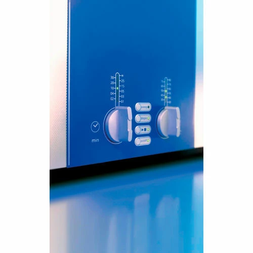The Elmasonic S ultrasonic bath operates at 37 kHz in three ultrasonic modes: Normal, Sweep, and Degas. Sweep mode produces a continuous slight variation of frequency to provide uniform and thorough cleaning of parts. Samples are rapidly mixed, dispersed, dissolved, or homogenized in Normal mode. A series of LEDs continuously show set time, time remaining, set temperature, and actual temperature. No need to scroll through menus to view parameters. The microprocessor-controlled generator in this sonic cleaner maintains constant ultrasonic power, sensing and adjusting for light or heavy loads in the tank. Digital operation with power tracking ensures reproducible performance from run to run.