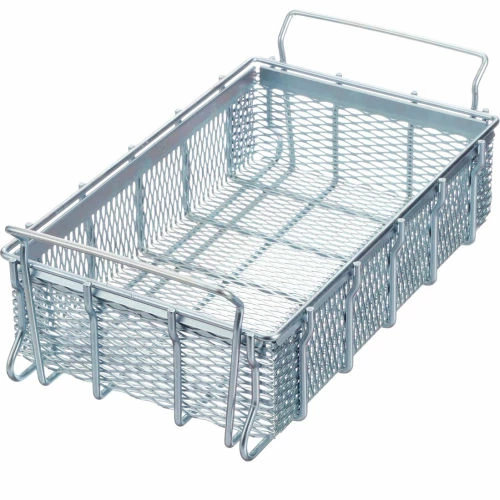 Basket to hold parts for washing, degreasing, cleaning, material handling, auto claving, ultrasonic cleaning, storage, heat treating and curing. The mesh has openings that are four openings per linear inch with 0.038″ wire diameter mesh. Frames and handles are made of 0.25″ wire rod. Robust design โ Industrial Grade. Basket stacks. Plain Steel Zinc Plated. Baskets used in Aerospace, Automotive, Medical, Pharmaceutical, Military and Industrial applications. Typical applications are washing parts that must be very clean like ball bearings or tooling or machined items.