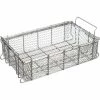 Basket to hold parts for washing, degreasing, cleaning, material handling, auto claving, ultrasonic cleaning, storage, heat treating and curing. The mesh has openings that are four openings per linear inch with 0.038″ wire diameter mesh. Frames and handles are made of 0.5″ wire rod. Robust design – Industrial Grade. Basket stacks. Plain Steel Zinc Plated. Baskets used in Aerospace, Automotive, Medical, Pharmaceutical, Military and Industrial applications. Typical applications are washing parts that must be very clean like ball bearings or tooling or machined items.