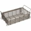Basket to hold parts for washing, degreasing, cleaning, material handling, auto claving, ultrasonic cleaning, storage, heat treating and curing. The mesh has openings that are four openings per linear inch with 0.038″ wire diameter mesh. Frames and handles are made of 0.25″ wire rod. Robust design โ Industrial Grade. Basket stacks. 304 Stainless Steel. Baskets used in Aerospace, Automotive, Medical, Pharmaceutical, Military and Industrial applications. Typical applications are washing parts that must be very clean like ball bearings or tooling or machined items.