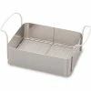 Basket to hold parts for washing, degreasing, cleaning, material handling, auto claving, ultrasonic cleaning, storage, heat treating and curing. The mesh has openings that are four openings per linear inch with 0.038″ wire diameter mesh. Frames and handles are made of 0.25″ wire rod. Robust design – Industrial Grade. Basket stacks. Plain Steel Zinc Plated. Baskets used in Aerospace, Automotive, Medical, Pharmaceutical, Military and Industrial applications. Typical applications are washing parts that must be very clean like ball bearings or tooling or machined items.