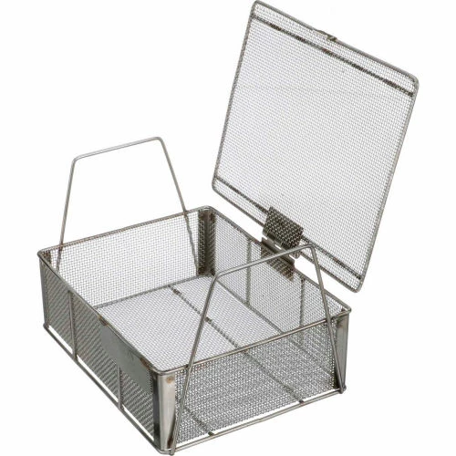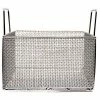 Rectangular material handling basket with handles and mesh that is ten openings per linear inch. Robust quality that is ideal for washing parts, parts degreasing, ultrasonic cleaning, curing, and materials handling in a variety of applications such as chemical bath, heat treating, and cryogenics. The baskets have handles for easy gripping. Each basket stacks so that parts do not get crushed inside the basket. 100% USA Made.